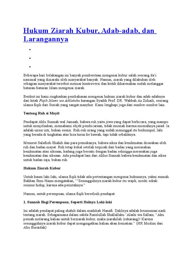Bermanfaat bagi orang yang berziarah dan yang diziarahi. Doa ziarah kubur yang singkat membaca al quran surat yasin dan tahlil ketika ziarah kubur? Akan tetapi terdapat perbedaan pendapat soal ziarah kubur bagi perempuan. Hukum diperbolehkannya ziarah kubur tentu tidak menjadikan seseorang justru malah menduakan allah atau musyrik. Hukum ziarah kubur bagi wanita.